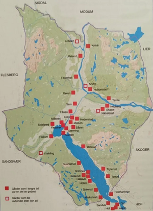 - ↑ Vgl. Statsarkivet Kongsberg, Eiker, Modum og Sigdal sorenskriveri, Tingbøk I 19, fol. 17, Besichtigung vom 24. Mai 1684, zitiert nach Sørensen 2022a, Anm. 23, S. 148. Siehe auch https://www.arkivportalen.no/entity/d95f0289-9490-4c8c-95fa-30b9796bee0d?ins=AV (11.06.2024).