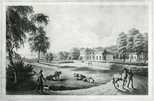 Im Mai des Jahres 1775 heiratete Claes Julius Ekeblad[79] (1742–1808) in Anwesenheit der königlichen Familie auf Schloss Fredrikshov[80] (Abb. 46) Brita Margareta Horn[81] (1745–1791), Hofdame der Königinmutter Luise Ulrike[82] (1720–1782, 1751 Königin), die Prinz Carl[83] (1748–1818) lange umworben hatte.[84] Nicht nur deshalb erregte die Heirat einiges Aufsehen: die Brautleute waren Kinder wichtiger Persönlichkeiten aus der hattpartiet[85] (Hut-Partei) und der mösspartiet[86] (Mützen-Partei) und stammten somit aus entgegengesetzten politischen Lagern.[87] Darüber hinaus heiratete das Paar ausdrücklich aus Liebe, wie aus der umfangreichen Korrespondenz der beiden hervorgeht, was zeitgenössisch als bemerkenswert galt. Dennoch gingen aus der Ehe keine Kinder hervor.[88] Nach ihrer Heirat verblieb Brita nicht im Dienst der Königin am Hof in Stockholm, sondern lebte mit ihrer Schwiegermutter, der willensstarken Eva de la Gardie[89] (1724–1786), auf dem Landsitz in Stola, während Claes Julius seine Aufgaben bei Hofe erfüllte.[90] Im Jahr 1780 stieg Claes Julius Ekeblad[91] (1742–1808) zum Kapitänsleutnant im Leibdragoner-Regiment (schwedisch kunglig majestäts drabanter[92]) und zweiten Kommandanten des Regiments auf.[93] Vier Jahre später erhielt Claes Julius die Ernennung zum landshövding[94] (Landvogt bzw. Gouverneur) der Region Uppsala,[95] die wenige Tage später gegen den Gouverneursposten der Region Skaraborgs län[96] (Skaraborg), in der Stola liegt, ausgetauscht wurde.[97] Sofern Claes Julius keine Verpflichtungen in Stockholm hatte, war sein Amtssitz nun das Schloss Mariedal[98] (Abb. 34, 35) bei Lidköping[99], das nur etwa 30 km von Stola entfernt liegt. Die anfängliche Reformpolitik Gustavs III.[100] (1746–1792, 1771 König) wurde nach mehreren Missernten in den 1780er Jahren zunehmend kritisiert, doch der Monarch vereinte die schwedische Nation ab 1788 in einem Krieg gegen Russland[101] (1788–1790).[102] Nach recht beeindruckenden schwedischen Kriegserfolgen legte der König dem Ständeparlament 1789 eine Änderung der Verfassung von 1772, den sogenannten Einheits- und Sicherheitsakt (schwedisch förenings- och säkerhetsakten[103]) vor, den der Adelsstand jedoch radikal ablehnte, da er dessen Rechte beschnitt. Daraufhin erteilte Gustav III. den Befehl zur Verhaftung der Oppositionsführer aus dem Adel – darunter auch Axel von Fersen d.Ä.[104] (1719–1794), Onkel Claes Julius Ekeblads[105] (1742–1808). Als Kommandant der Leibdragoner-Regiment (schwedisch kunglig majestäts drabanter[106]) führte Ekeblad diese Order loyal aus,[107] doch am folgenden Tag legte Claes Julius als Konsequenz sein Amt als överstekammarjunkare[108] (Oberkammerjunker) des Königs, das er seit 1787 inne hatte, nieder.[109] Die vom König initiierte Verfassungsänderung wurde gegen den Adel mit den Stimmen der anderen drei Stände (Klerus, Bürger und Bauern) angenommen und gewährte dem König weitere Rechte.[110] Dank eines Passes von Prinz Carl[111] (1748–1818) konnte Claes Julius sich in der Folge, ohne als Deserteur zu gelten, bei seiner Frau in Stola zurückziehen,[112] die das ruhige Landleben dort sehr schätzte (Abb. 47). In ihren Briefen an Claes Julius[113] (1742–1808) aus Stola hatte Brita Margareta Horn[114] (1745–1791) sich wiederholt über die lange Trennungen von ihm geäußert[115] und nach dem Tod ihrer Schwiegermutter Eva de la Gardie[116] (1724–1786) war es – trotz der vorherigen Meinungsverschiedenheiten mit dieser[117] – auf dem Gut vermutlich ziemlich einsam geworden. Eine von Gustav III.[118] (1746–1792, 1771 König) angebotene Position bei Hofe lehnte Brita jedoch ab.[119] Britas Mutter, Anna Katarina Meijerfelt (1722–1779), wird als ‚lange Zeit unzurechnungsfähig‘ beschrieben und ihr Vater Adam Horn[120] (1717–1778), versuchte vergeblich sich scheiden zu lassen und war daher zeitlebens für seine vielen Affären berüchtigt.[121] Möglicherweise hatte Brita eine Neigung zur Depression geerbt, in jedem Fall ertränkte sie sich – wie es zeitgenössisch hieß – ‚in einem Anfall von Wahnsinn‘ im März 1791.[122] Claes Julius traff der Verlust seiner geliebten Frau sehr schwer und wohl deshalb nahm er noch im gleichen Jahr den Dienst als överstekammarjunkare[123] (Oberkammerjunker) des Königs in Stockholm wieder auf.[124] Fünf Jahre später legte er 1796 sein Amt als Gouverneur von Skaraborg[125] nieder und zog sich ganz nach Stola zurück.[126] Besuche in Stockholm und bei Freunden auf dem Land wurden seltener.[127] Neben der Vergrößerung der Sammlungen der Familie widmete Claes Julius sich in Stola vor allem der Verschönerung von Garten und Park nach der zeitgenössischen Mode. So ließ er ein Gewächshaus und eine Orangerie bauen,[128] die wohl auf einer Zeichnung des Parks aus dem Jahr 1790 zu erkennen sind (Abb. 48) heute jedoch nicht mehr bestehen (vgl. 09.05 Garten und Park 1790).